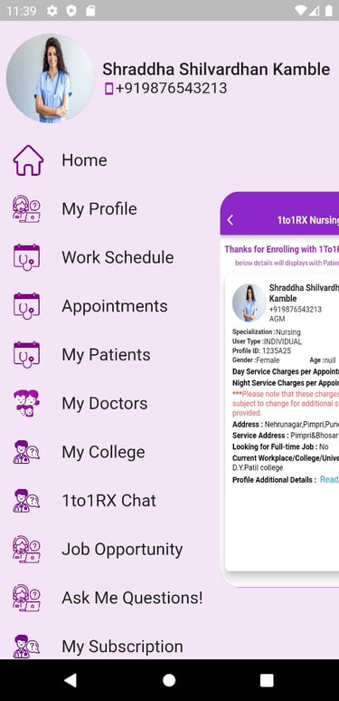 The 1to1RX Nurses App is committed to enhancing healthcare connectivity. We collaborate with 1to1RX Apps to create a healthy society by connecting nursing job seekers, including Doctors, with Hospitals in India and overseas. Explore Part-Time and Full-Time service opportunities in your vicinity, providing a valuable chance to earn income. Our main aim is to help society and create a healthy community. Join us in empowering healthcare professionals and institutions towards building a healthier society. #1to1RX